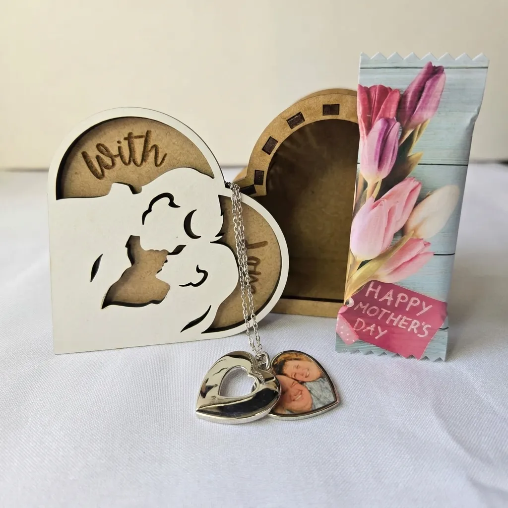 What makes this gift truly special is the unique wooden heart box, featuring a delicate mother-and-child design and the words “with love”. It’s not just packaging — it’s part of the gift.